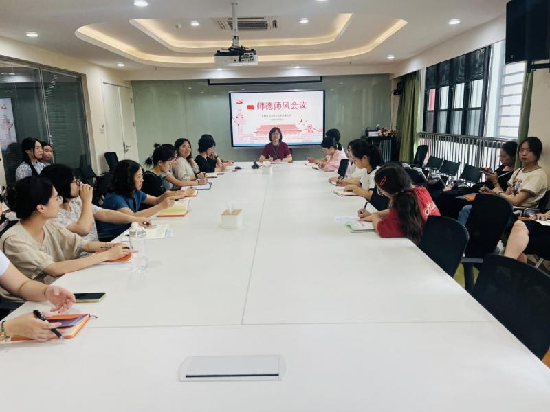 8月30日,求真实幼全体教师集中四楼大会议室召开新学期开学工作会议,会上,徐园长在作出新学期工作的部署与安排的同时,也对全体教师提出了殷殷期望,并带领全体教师重温了《新时代幼儿园教师职业行为十项准则》等相关政策文件,旨在将高尚的师德师风内化为每位教师的自觉行动,要求全体教师爱岗敬业,严于律己,内化于心,外化于行。