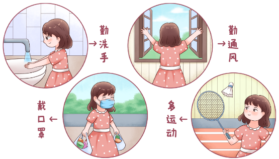 日常注意保持手部卫生和咳嗽礼仪等良好卫生习惯。在流感流行季节,尽量避免去人员密集场所。